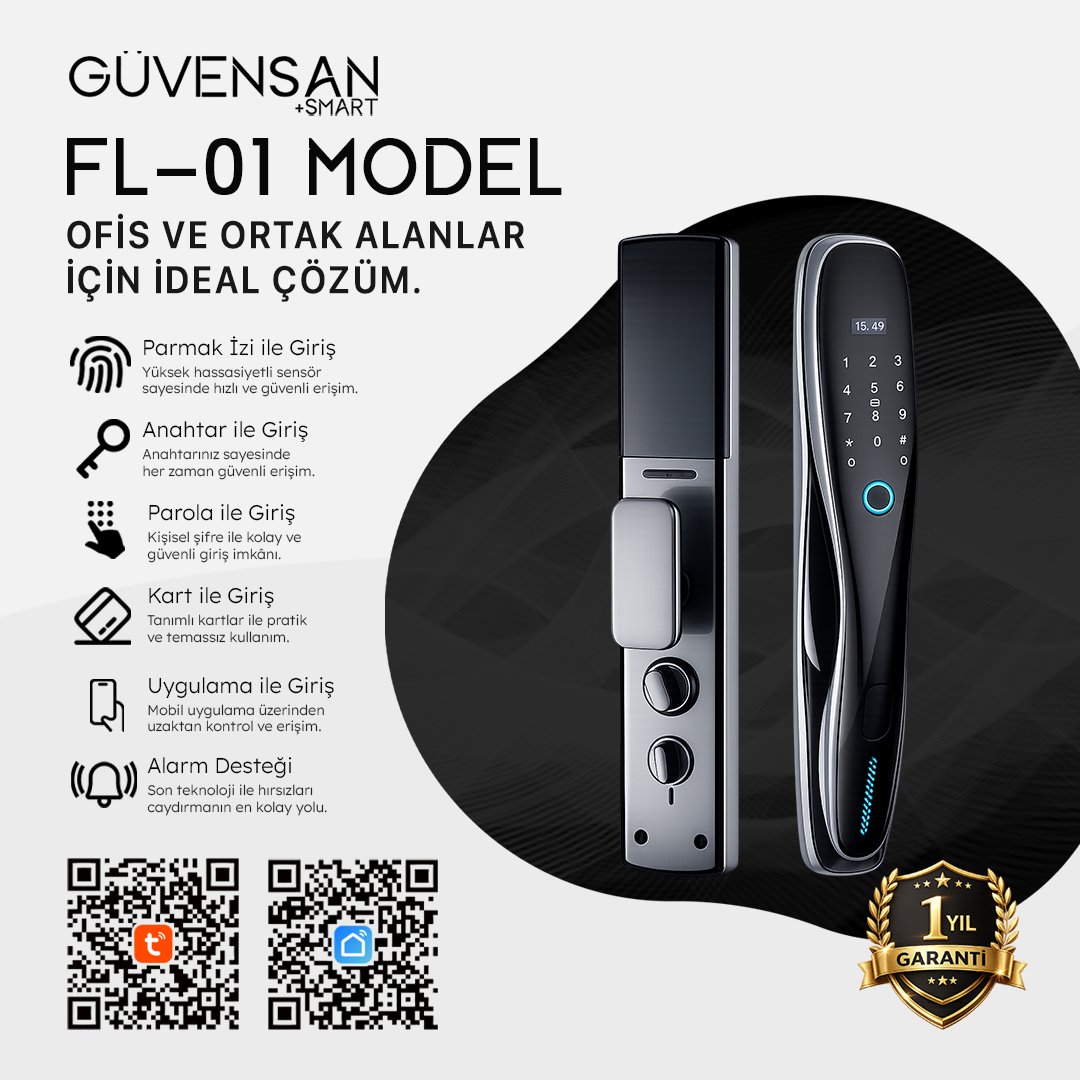 Güvensan FL-01 akıllı kapı kolu 0.8 salisede devreye giren biyometrik sensörü sayesinde parmak izinizi , yüzünüzü , avuç içinizi tanımlayarak evinizi yabancılara karşı bir kaleye dönüştürür. Dünyanın neresinde olursanız olun evinizin kontrolü tek bir dokunuşla elinizde.O , kapınızın asla uyumayan, en sadık bekçisidir.